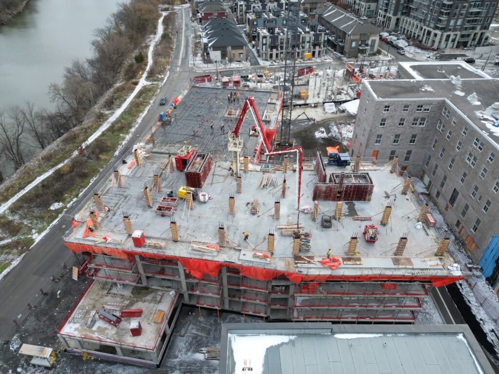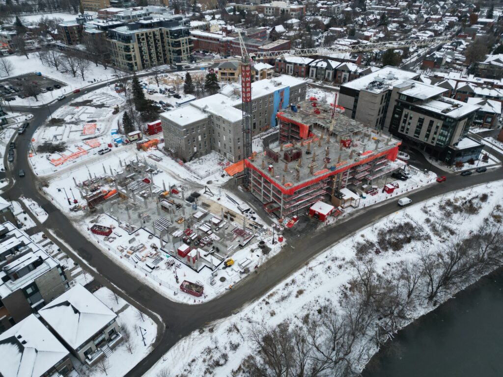 This project will consist of a 7-storey (Building 3A), and an 8-storey (Building 3B), 231-unit apartment complex at 375 Deschatelets Ave. Comprised of studio, one and two + and 3 bedroom units, these two buildings will have a gross floor area of 28,267m². Both buildings sit on a single level of shared underground parking, consisting of 165 spaces. The site will also include 222 bicycle parking spaces, 10 of those being above grade, with the majority being located in the underground parking level. A variety of amenities will be available on both the ground floor and roof top terraces.