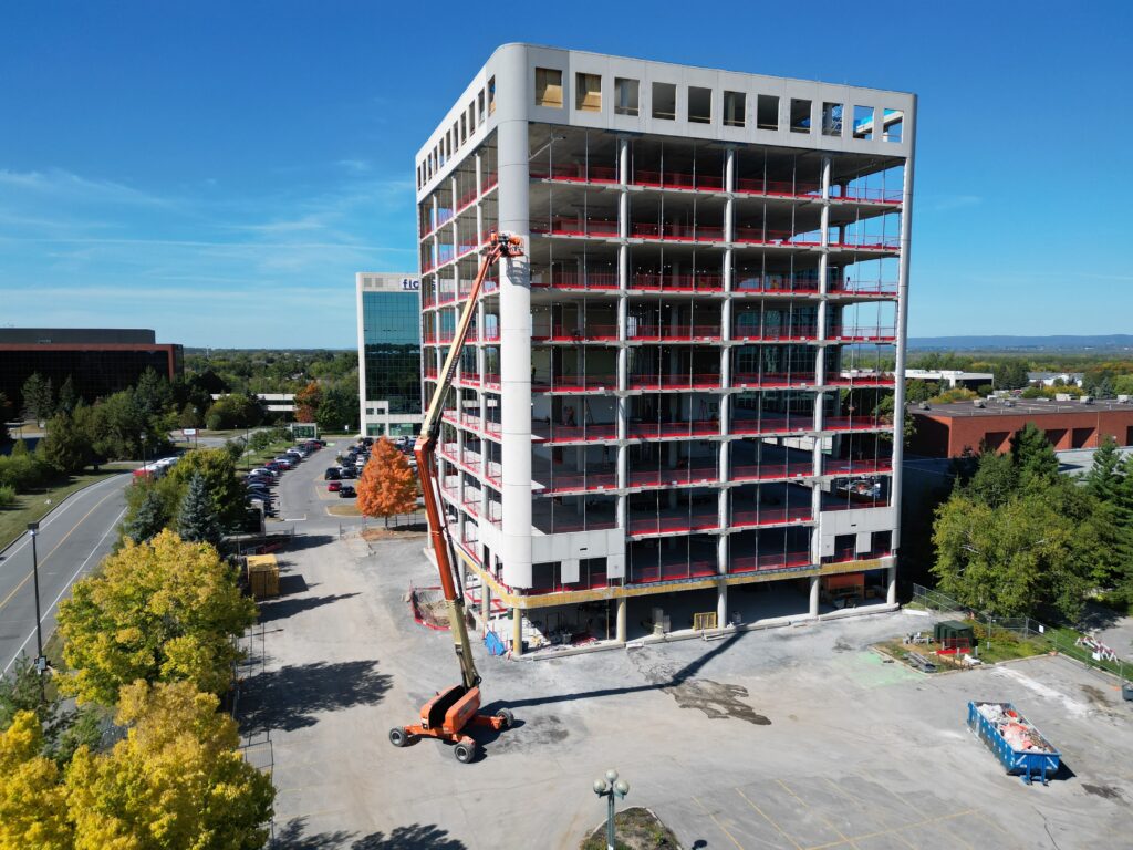 The project involves the conversion of an existing 10-storey office building (plus mechanical penthouse and 1 basement level) into 115 rental apartments, including 4 multi-level penthouse suites. The building will have a total gross floor area of roughly 16,339m2, including 400m2 of ground floor office space. Located at 535 Legget Drive, the project includes 113 bicycle spaces in the basement level and 6 at the building exterior, 107 above grade outside parking spaces and pedestrian links, at the basement and ground levels, to the existing Brookstreet Hotel.